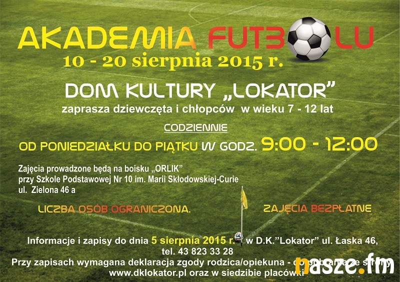 Dom Kultury "Lokator" w Zduńskiej Woli również włącza się w wakacyjną akcję i proponuje dla dzieci i młodzieży ciekawą ofertę. Od dzisiaj "Lokator" zamienia się w Centrum Rozrywki. Na dzieci i młodzież czekać będą cymbergaje, piłkarzyki, symulatory, stół do tenisa stołowego i wiele innych zabaw. Ale to nie wszystko.....Prowadzone są już zapisy na zajęcia do Akademii Futbolu.