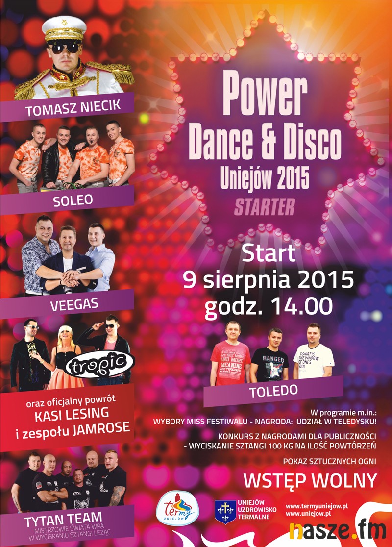 Początek Power Dance&Disco Uniejów 2015 o godzinie 14:00, wstęp wolny.