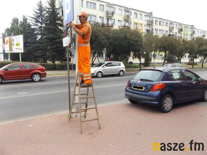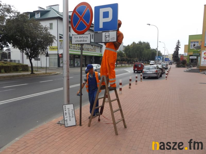Dziś po godzinie 8 pracownicy Powiatowego Zarządu Dróg w Sieradzu zamontowali tabliczki pod znakami informujące, że można tam parkować maksymalnie do jednej godziny.