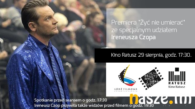 Aktor będzie gwiazdą premiery filmu Macieja Migasa "Żyć nie umierać", w którym wystąpił obok Tomasza Kota, Janusza Chabiora oraz Jacka Braciaka. Spotkanie odbędzie się w Kinie w Ratuszu 29 sierpnia (sobota) o godz. 17:30 (przed seansem). Ireneusz Czop przywita także widzów seansu o godz. 19:30.