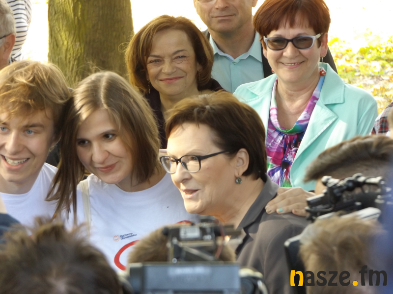 Ewa Kopacz dziś w samo południe odwiedziła Sieradz. Spotkała się ze strażakami, a później odwiedziła wzgórze zamkowe. Na konferencji na Rynku zaapelowała do Jarosława Kaczyńskiego: Nie chowaj się pan za spódnicą kobiety, stań ze mną do debaty! Premier była również gościem na antenie Naszego Radia.