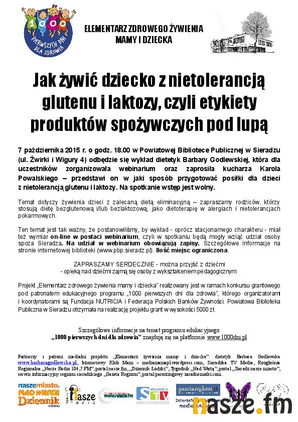 "Elementarz zdrowego żywienia mamy i dziecka" jest cyklem spotkań organizowanych w ramach ogólnopolskiego programu edukacyjnego, kierowanego do rodziców i opiekunów małych dzieci. Pomysłodawcą i koordynatorem programu jest Fundacja Nutricia. W Sieradzu projekt realizuje PBP.