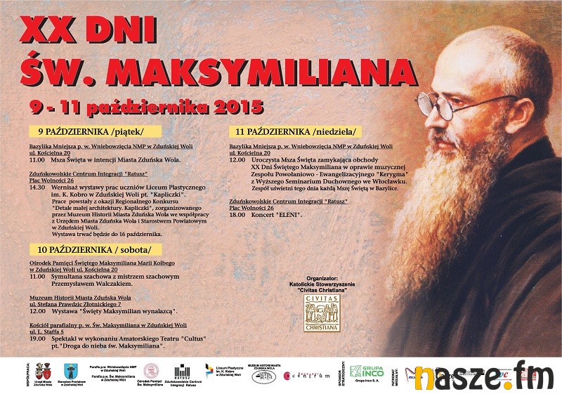 W piątek uroczystą mszą świętą w intencji miasta zainaugurowane zostaną XX Dni Św. Maksymiliana patrona Zduńskiej Woli. Obchody, które potrwają do niedzieli organizuje Katolickie Stowarzyszenie "Civitas Christiana".
