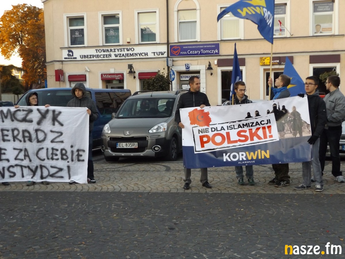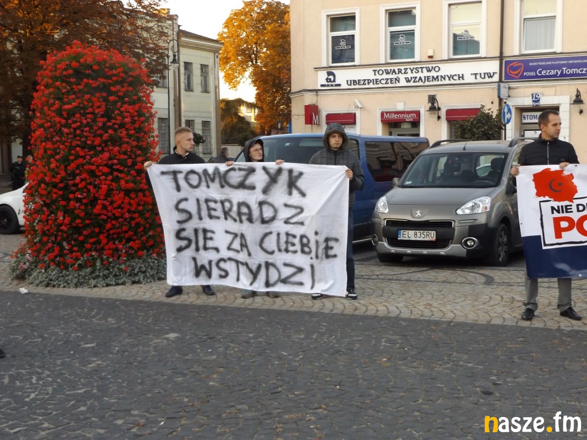 Dziś o 17:30 pod biurem posła Cezarego Tomczyka odbyła się pikieta antyimigracyjna. Na sieradzkim rynku przeciw polityce rządu protestowało około 150 osób.