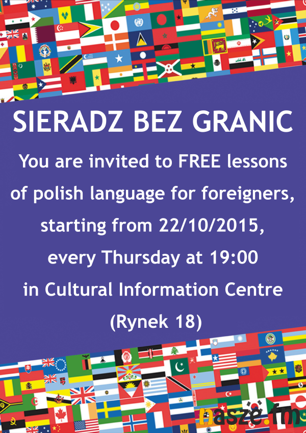 Darmowe lekcje języka polskiego dla cudzoziemców z regionu odbędą się dziś (22 października) w Centrum Informacji Kulturalnej w Sieradzu. Organizatorzy zapowiadają, że lekcje będą cykliczne. Początek dzisiejszych zajęć o 19.