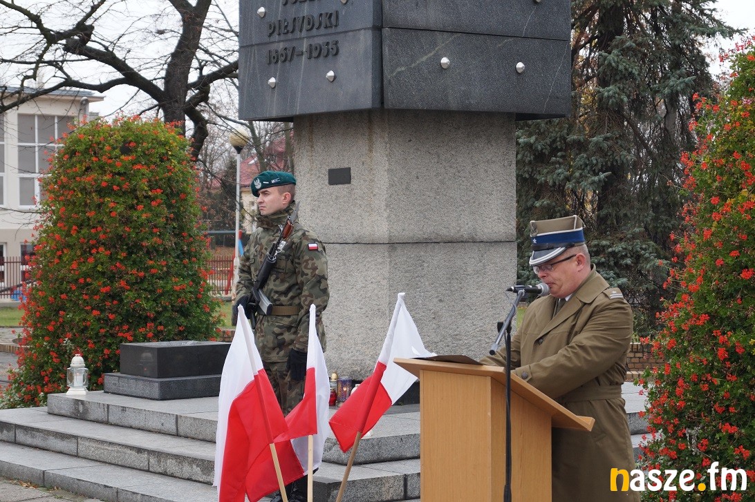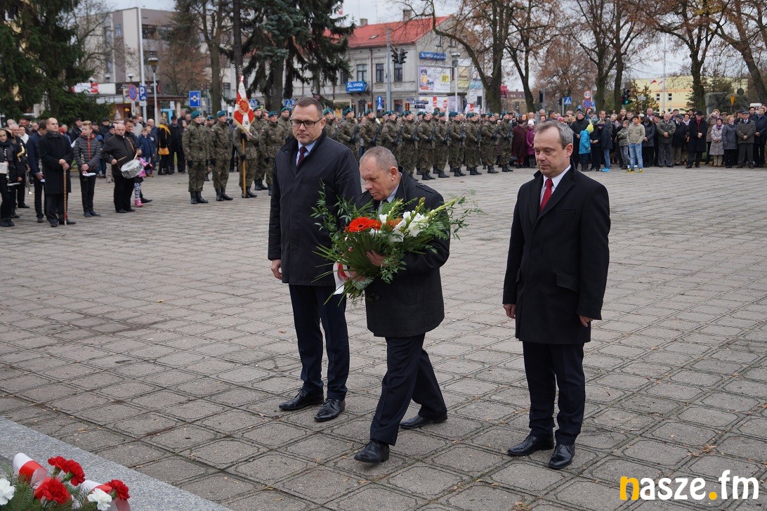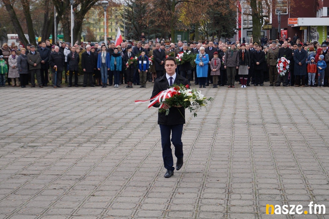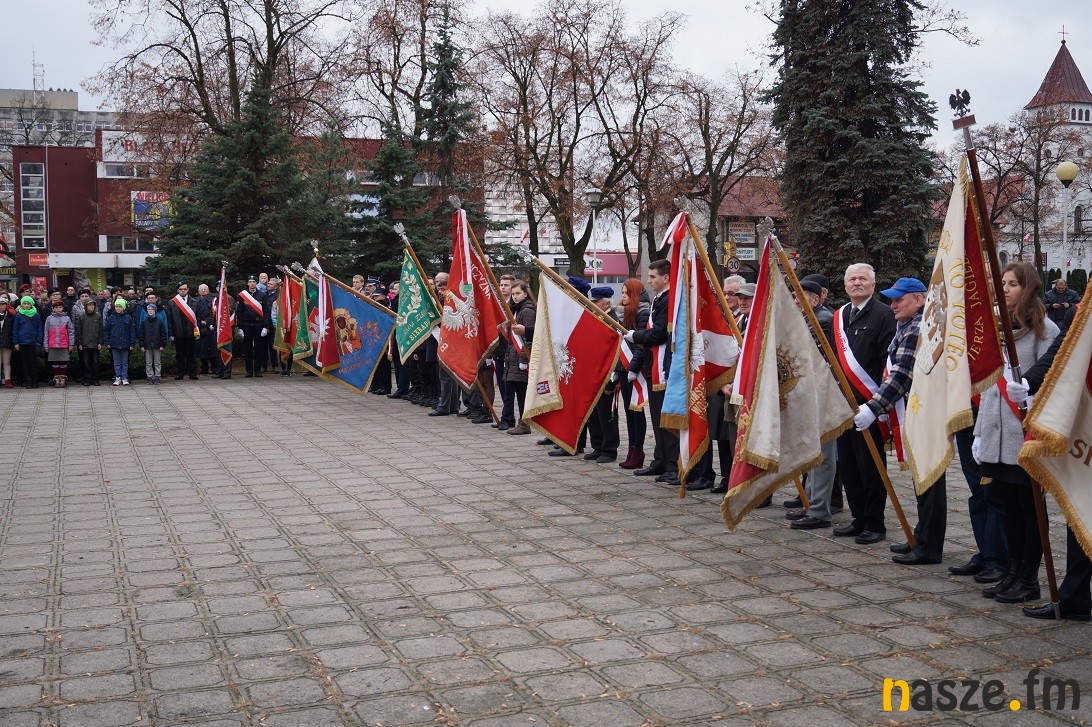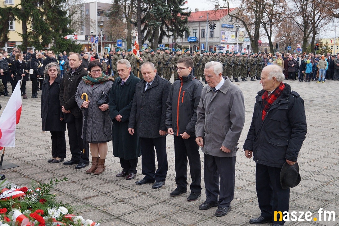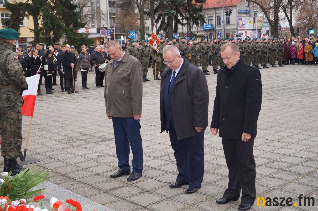Obchody Narodowego Święta Niepodległości na placu przy pomniku Józefa Piłsudskiego rozpoczęły się około godziny 11:30, tuż po nabożeństwie w kolegiacie i przemarszu na plac. Po drodze prezydent Paweł Osiewała i starosta Dariusz Olejnik złożyli kwiaty pod pomnikiem "Poległym za ojczyznę” przy ulicy Kościuszki.