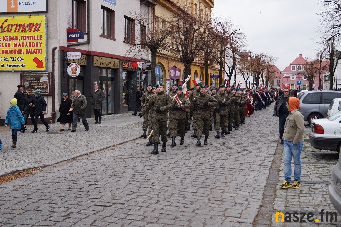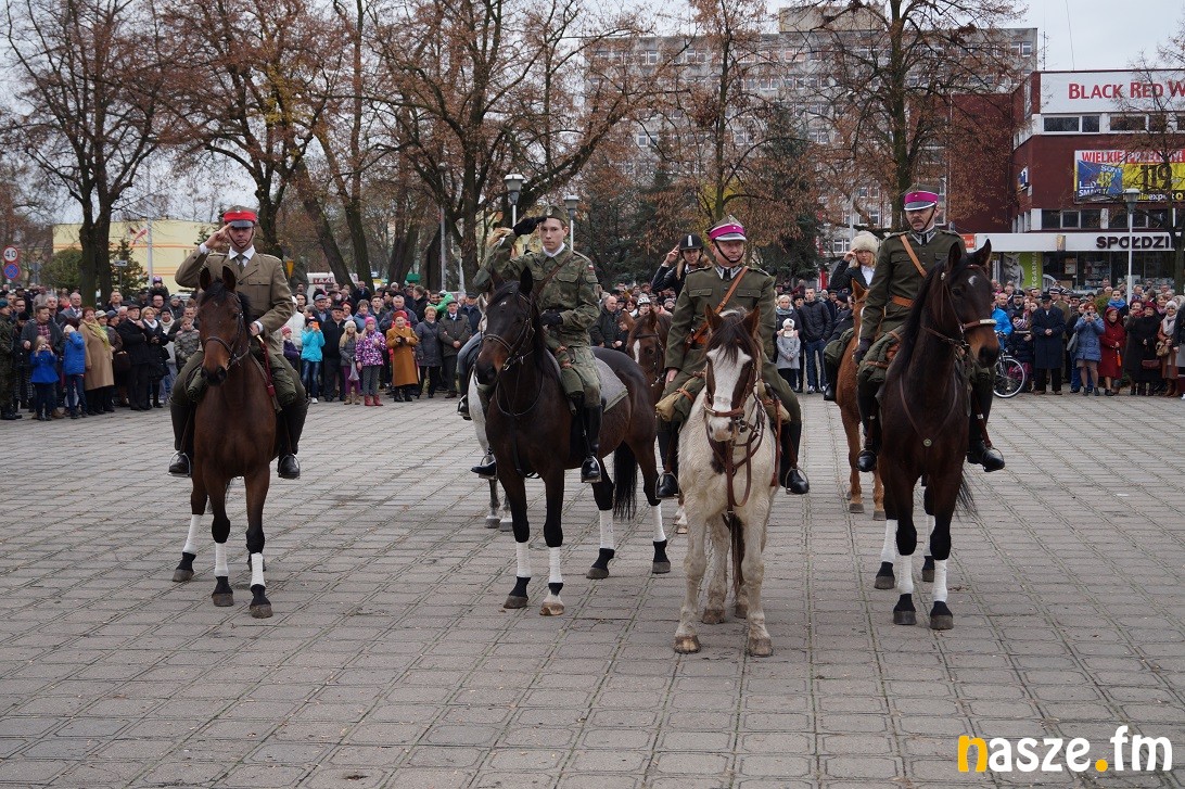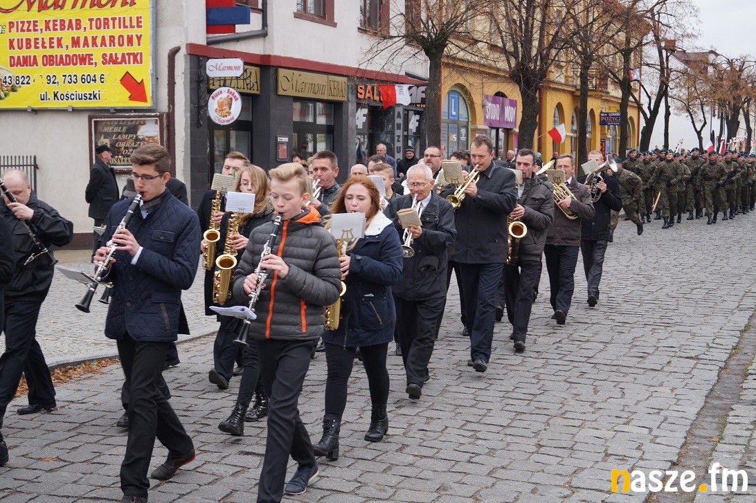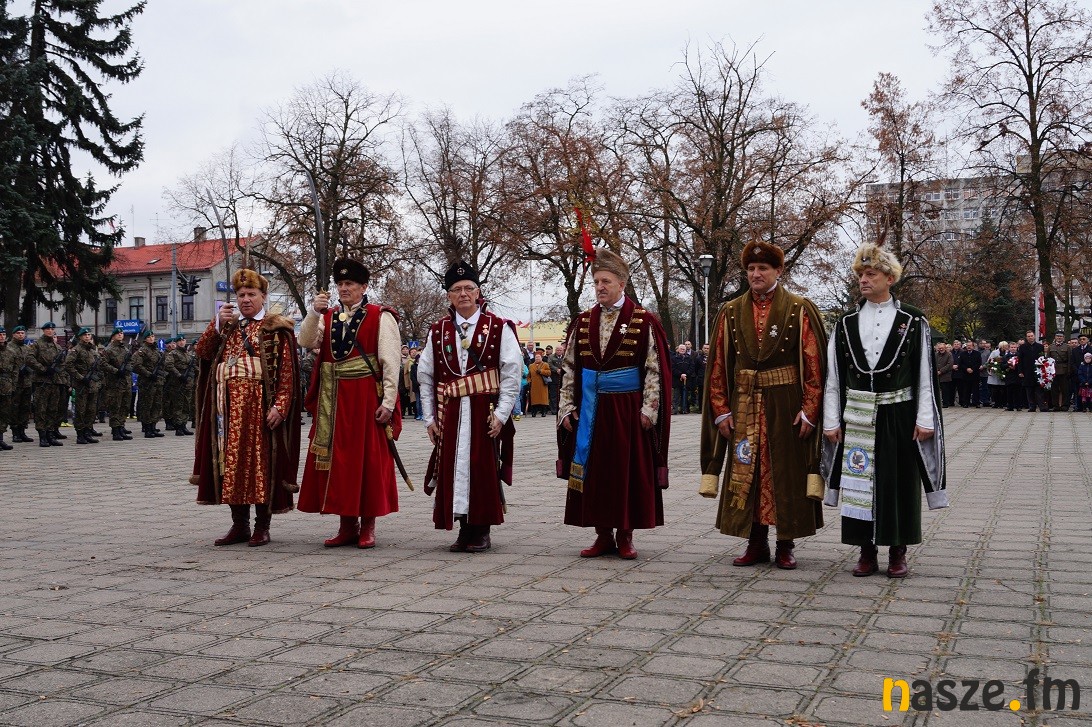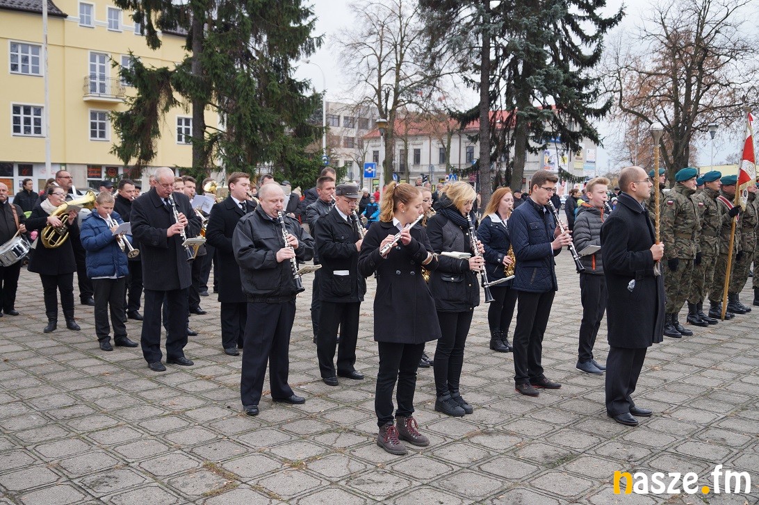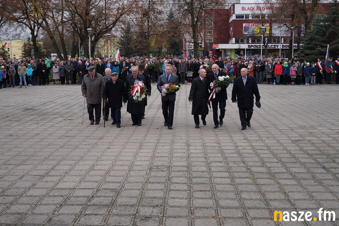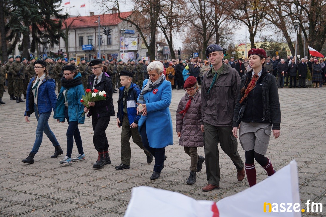 Obchody Narodowego Święta Niepodległości na placu przy pomniku Józefa Piłsudskiego rozpoczęły się około godziny 11:30, tuż po nabożeństwie w kolegiacie i przemarszu na plac. Po drodze prezydent Paweł Osiewała i starosta Dariusz Olejnik złożyli kwiaty pod pomnikiem "Poległym za ojczyznę” przy ulicy Kościuszki.
