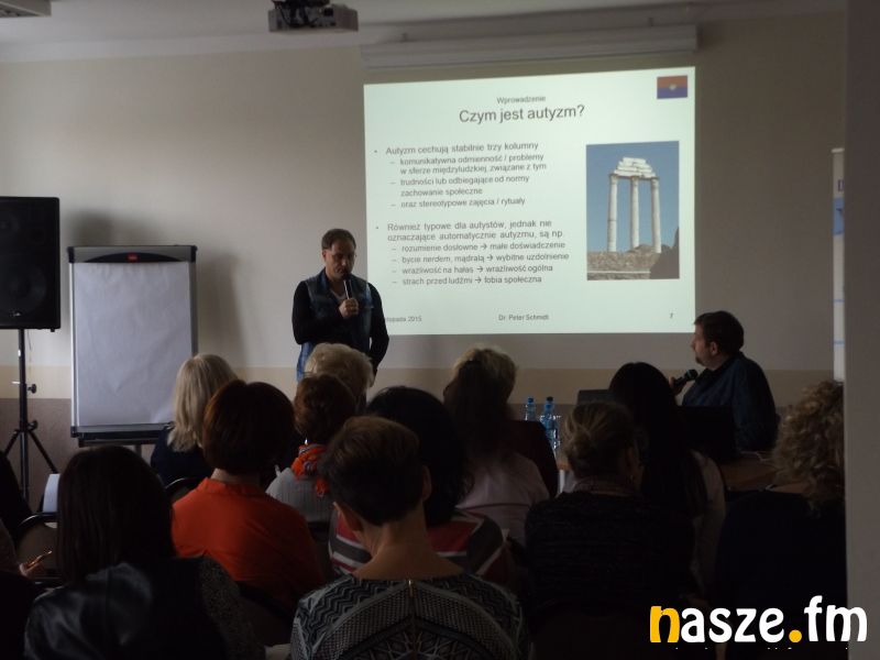 Wykład poświęcony był zagadnieniu współpracy w szkole z dziećmi i nastolatkami, które mają zdiagnozowany syndrom Aspergera. Zajęcia z nauczycielami poprowadził dr Peter Schmidt, który w wieku 41 lat dowiedział się, że ma syndrom Aspergera.