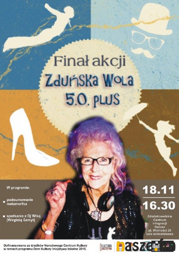 Podczas podsumowania projektu nie zabraknie prezentacji metamorfoz uczestników akcji Zduńska Wola 5.0 plus. Na wieczór zaproszono Wirginię Szmyt czyli DJ Wikę - najstarszą najstarszą didżejka w Polsce