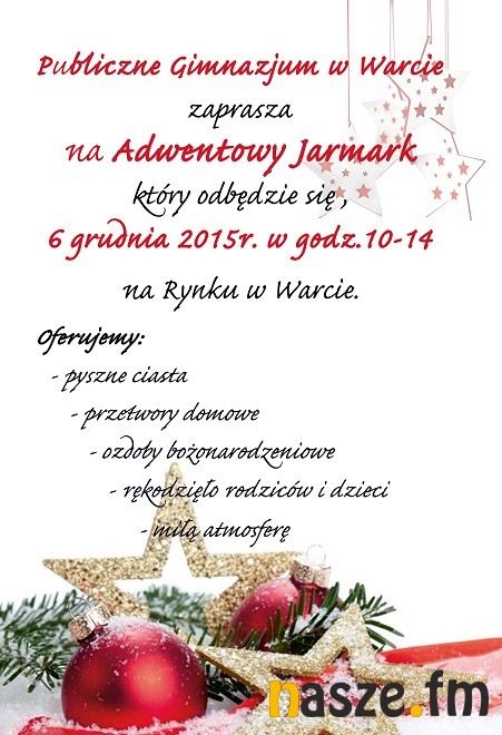 Świąteczny klimat już w ten weekend zapanuje na warckim rynku. Uczniowie i nauczyciele Publicznego Gimnazjum w tej miejscowości zapraszają na kiermasz świąteczny.