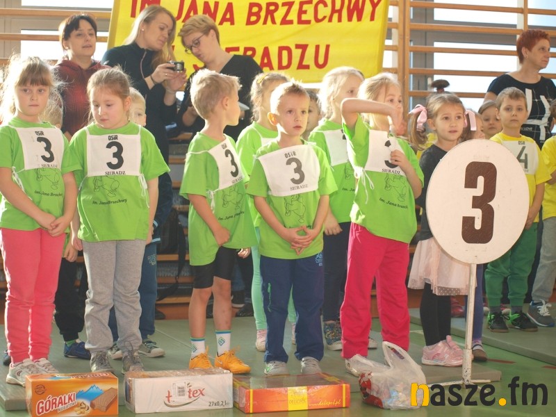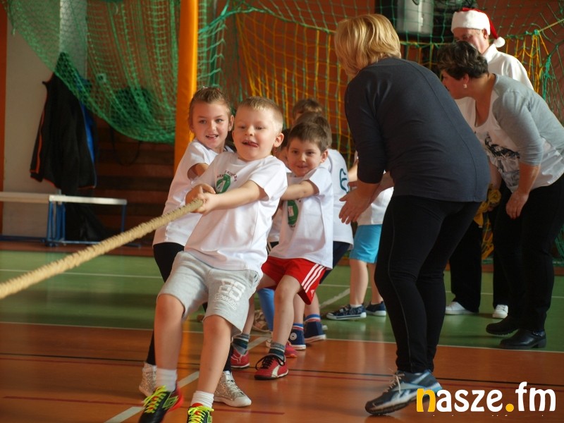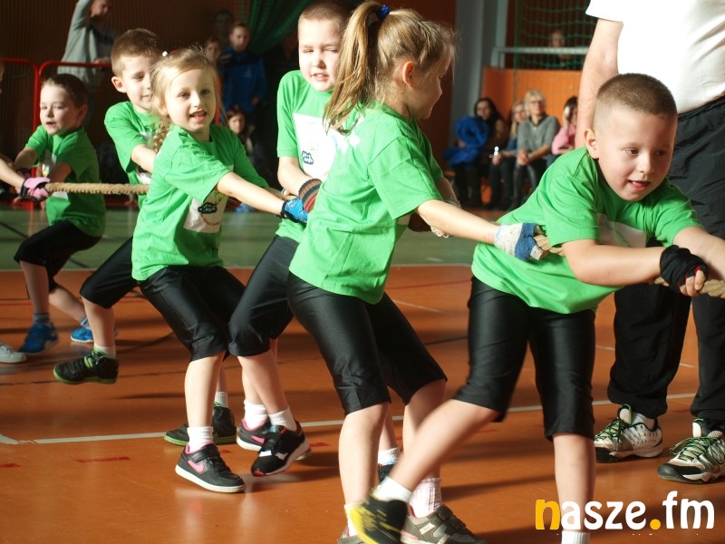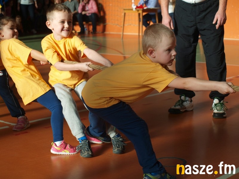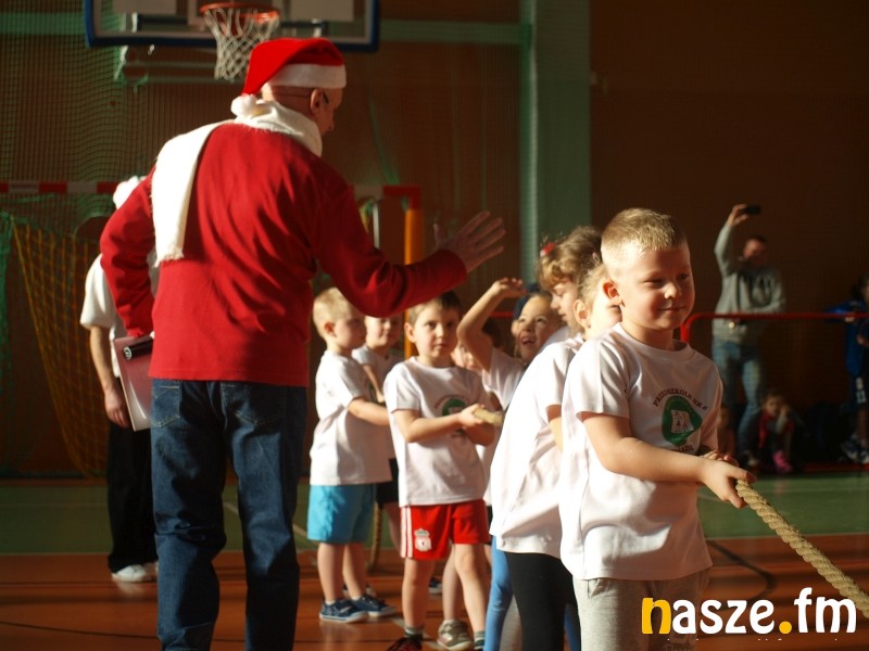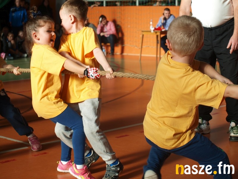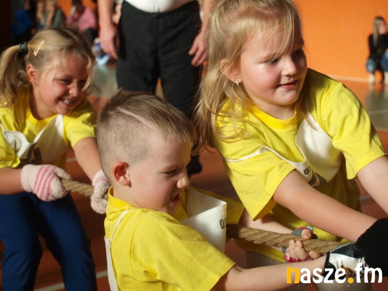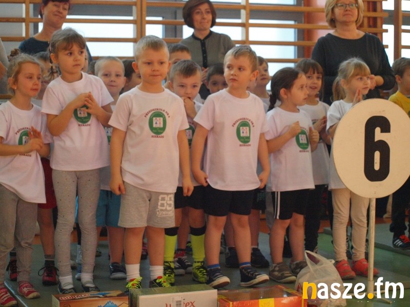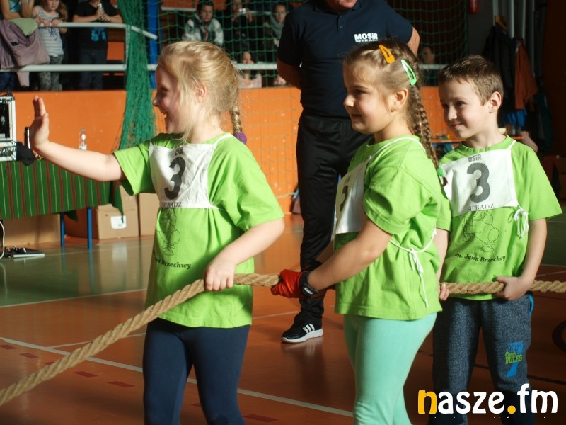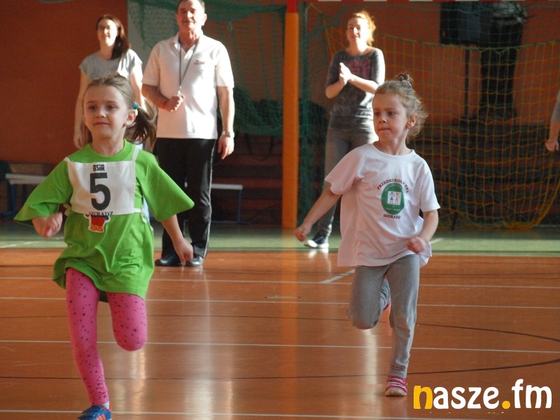 Na parkiecie rywalizowały dzieci, a na trybunach zasiedli ich rodzice i dziadkowie. Część z nich sama pamięta swoje występy w igrzyskach przedszkolaków. W historii sieradzkich zawodów zdarzało się także, że na podium stawały pociechy znanych w mieście zawodników. Tak było i w tym roku, bo bieg sprinterski wygrała Maja, córka byłej mistrzyni Ogólnopolskiej Olimpiady Młodzieży Aleksandry Kociołek. Oprócz biegu płaskiego rozegrano dziś także: bieg przez płotki, bieg sztafetowy, konkurs strzałów na bramkę, przeciąganie liny i konkurs tańca. Tradycyjnie najwięcej emocji wzbudziło przeciąganie liny, mali siłacze dali z siebie wszystko, a rywalizacja była niezwykle zacięta. W ostatniej konkurencji wybrane pary taneczne z poszczególnych przedszkoli zaprezentowały swoje nieprzeciętne umiejętności. Niektórych elementów choreografii nie powstydziłby się nawet Taniec z Gwiazdami. Organizatorzy nie zapomnieli także o opiekunkach młodych sportowców, specjalnie dla pań przedszkolanek przygotowali bowiem wyścig w workach. Na zakończenie wszyscy uczestnicy igrzysk otrzymali złote medale. Nie zabrakło również słodkich upominków od mikołaja.