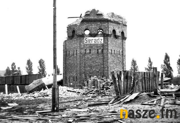 Jest wysoka na 32 m i ma sześć kondygnacji. W tej wersji, którą możemy dziś zobaczyć ma już 68 lat. Kolejowa wieża ciśnień w Sieradzu została wzniesiona przez Niemców w 1941 r., którzy niejako odbudowali starą polską wieżę zbombardowaną we wrześniu 1939 roku (fot.). O odbudowie w dużej mierze zdecydowały zwiększone potrzeby przewozowe i rozbudowa węzłów kolejowych związana z utworzeniem frontu wschodniego. Wieża przestała być wykorzystywana w 1977 r. Dziś ma bardziej historyczne, niż praktyczne znaczenie dla kolejarzy. Wyprawę do jej tajemniczego wnętrza zorganizował w 2007 roku Kazimierz Kasperczak, wieloletni działacz sieradzkiego PTTK: