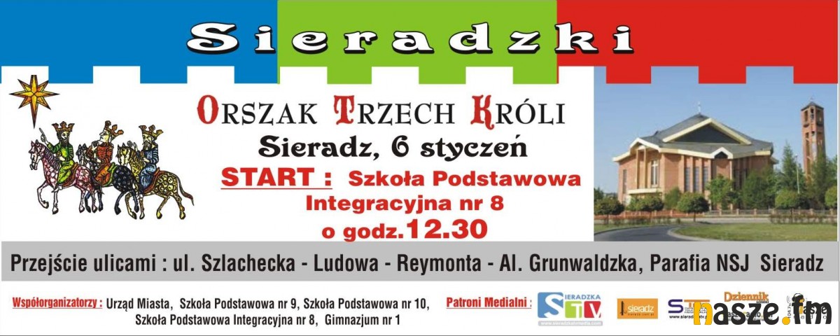 Sieradzki Orszak Trzech Króli wyruszy spod Szkoły Podstawowej Integracyjnej nr 8 i przejdzie ulicami Szlachecką, Reymonta i Grunwaldzką pod kościół na Jaworowym.