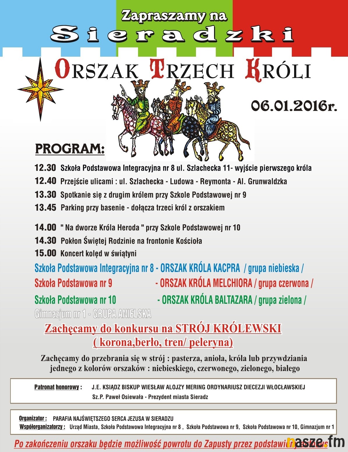 W całej Polsce 6 stycznia po ulicach miast przejdzie Orszak Trzech Króli. W tym roku po raz pierwszy do akcji włącza się sieradzka parafia NSJ na Jaworowym wraz z Urzędem Miasta, Szkołami Podstawowymi nr 8, 9 i 10 oraz Gimnazjum nr 1.