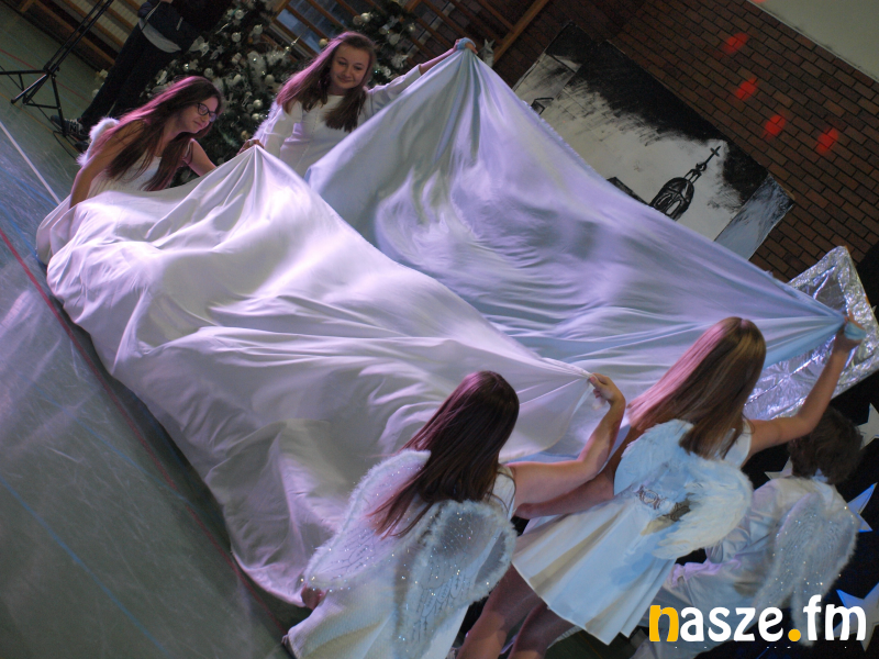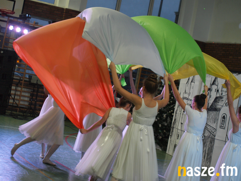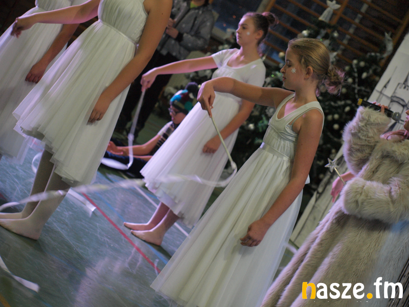 Uczniowie na sali gimnastycznej zaprezentowali klasyczną baśń Hansa Christiana Andersena "Królowa Śniegu". Oprawa muzyczna była pełna kolęd, jednak znalazło się miejsce też na rytmy, przy których można było zorganizować pokaz tańca.