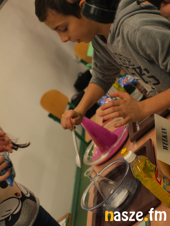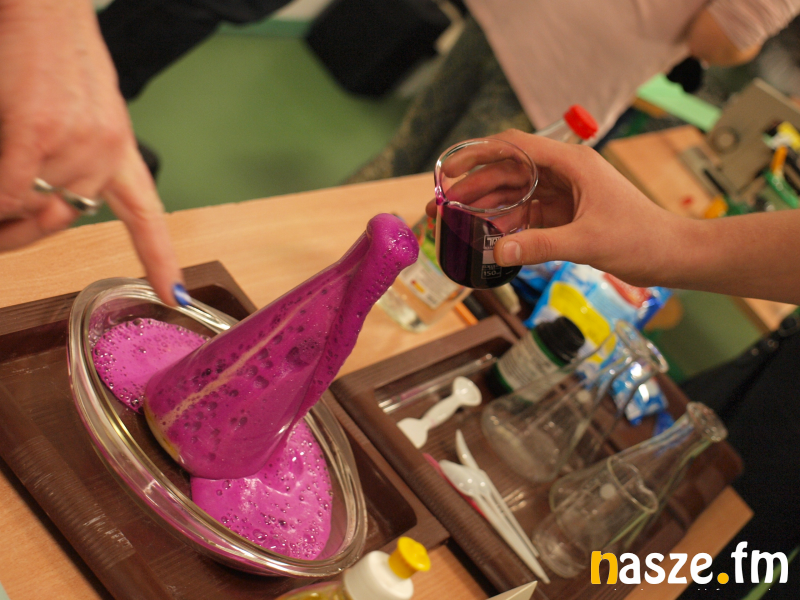 Po wszystkich uroczystościach na sali gimnastycznej uczniowie zaprosili na zorganizowany przez nich festiwal nauki. Pokazywali proste doświadczenia chemiczne, które można bezpiecznie wykonać samemu w domu.
