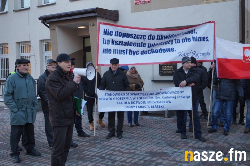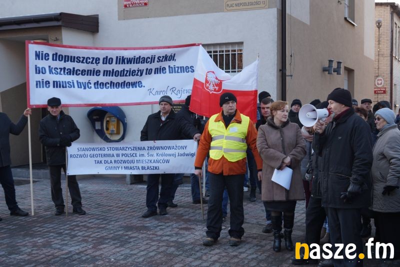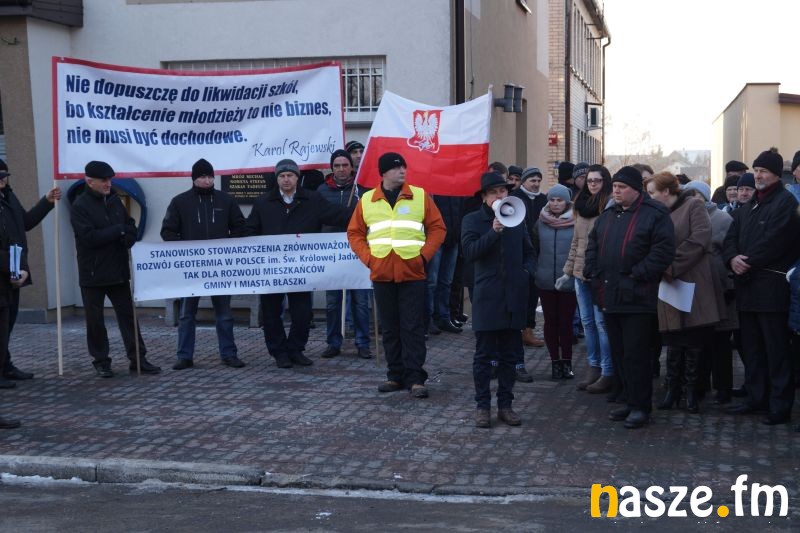 - Nas dzisiaj sprowadza plan pana Jacka Walczaka, który zaszczepił tą wrogą ideę Karolowi Rajewskiemu, który jeszcze przed 14 miesiącami zaklinał się, że nie będzie likwidował szkół, które mają być placówkami przede wszystkim edukacji, nauki i rozwoju myśli. Na dzień dzisiejszy szalony zwrot myśli naszego burmistrza jest spowodowany wpływem ideologii Jacka Walczaka, który jest gotów zamienić nasze wielopokoleniowymi trudami budowane placówki edukacyjne na wybrukowanie rynku błaszkowskiego na wzór sieradzkiego - mówił Aleksander Kołodziejczyk, jeden z protestujących.