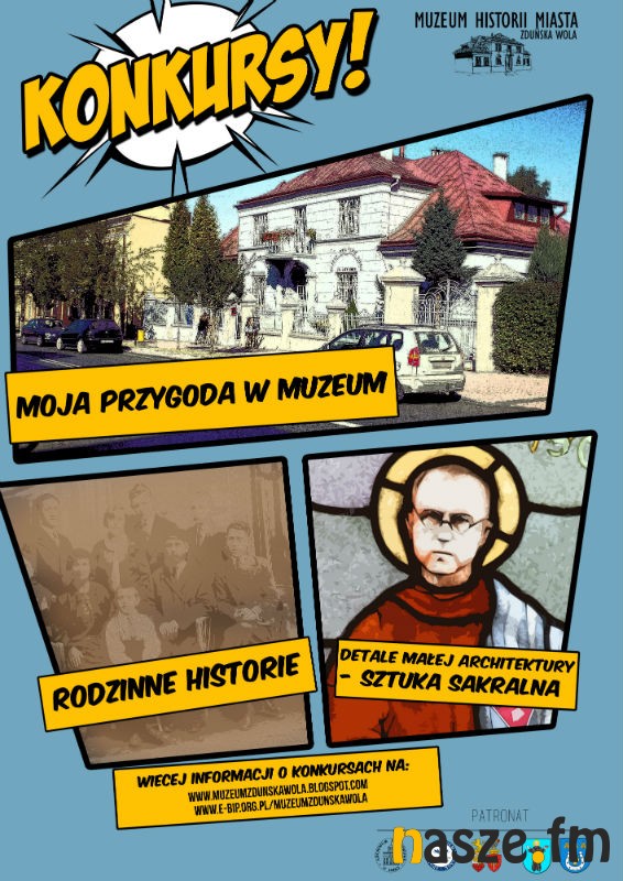 Muzeum Historii Miasta Zduńska Wola ogłosiło trzy konkursy: "Moja przygoda w muzeum", "Detale małej architektury. Sztuka sakralna" oraz "Rodzinne Historie". Udział w konkursach można zgłaszać do 5 kwietnia. Z kolei na prace konkursowe placówka czeka do 25 kwietnia.