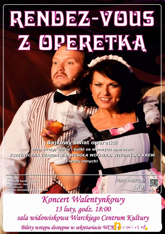 "Księżniczka Czardasza", Wesoła wdówka", Wiedeńska krew" - to tylko, niektóre z operetek, z których arie, duety, walce i polki zabrzmią podczas tego koncertu. Początek o godz. 18:00, bilety w cenie 15 zł do kupienia w sekretariacie WCK.