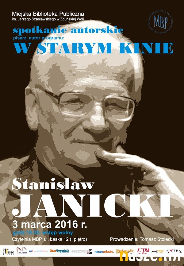 Miejska Biblioteka Publiczna im. Jerzego Szaniawskiego w Zduńskiej Woli zaprasza na spotkanie autorskie ze Stanisławem Janickim - pisarzem i scenarzystą, krytykiem filmowym i historykiem kina, autorem programu telewizyjnego W starym kinie.