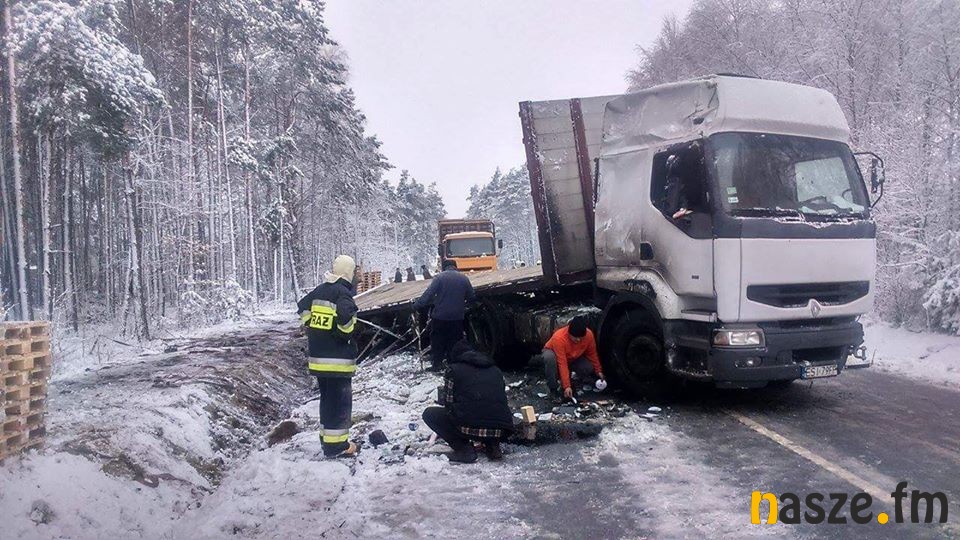 Najlepszym na to dowodem wczorajsze poranne zdarzenie drogowe w miejscowości Szczesie (gm. Brąszewice). Doszło tam do zderzenia samochodu osobowego z tirem wyładowanym drewnianymi paletami. Jako przyczynę tego zdarzenia przyjęto niedostosowanie prędkości jazdy do warunków panujących na drodze. W wyniku zderzenia obu pojazdów ciężarówka przewróciła się na bok, a samochód osobowy zjechał na przydrożne pole uprawne. Kierowcom na szczęście nic się nie stało, obaj odmówili przewiezienia do szpitala. Na miejscu zdarzenia działały jednostki Jednostki Ratowniczo-Gaśniczej z Sieradza oraz druhowie z jednostek ochotniczych z Brąszewic i Godynic. Swoje czynności prowadziła również policja. Kierowcy powinni teraz zwracać szczególną uwagę na sytuację na drogach i panujące warunki jazdy. Najgorzej z bezpieczną jazdą jest zwłaszcza na bocznych gminnych drogach, które są odśnieżane w ostatniej kolejności. Przy temperaturze oscylującej w okolicach 0 st. C padający śnieg szybko zamienia się w pośniegowe błoto i to ono powoduje, że kierowcy mogą mieć kłopoty np. z bezpiecznym hamowaniem.