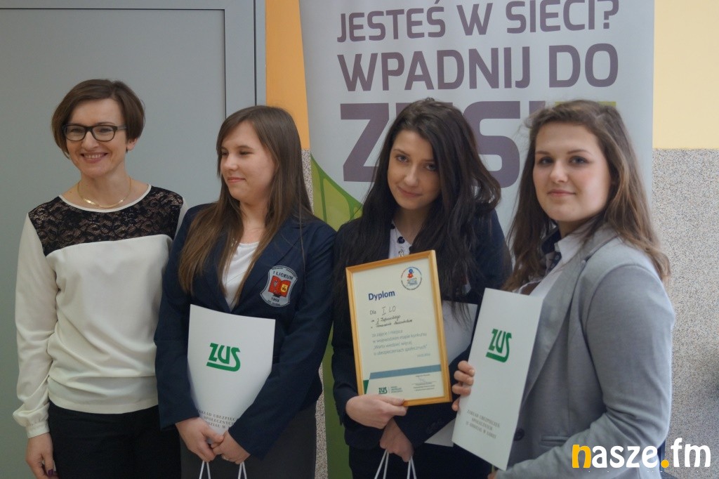 I miejsce i najlepszy wynik z testu osiągnęły uczennice z I Liceum Ogólnokształcącego z Tomaszowa Mazowieckiego i ta szkoła będzie reprezentować województwo łódzkie w eliminacjach ogólnopolskich, które odbędą się 26 kwietnia w Centrali Zakładu Ubezpieczeń Społecznych w Warszawie.