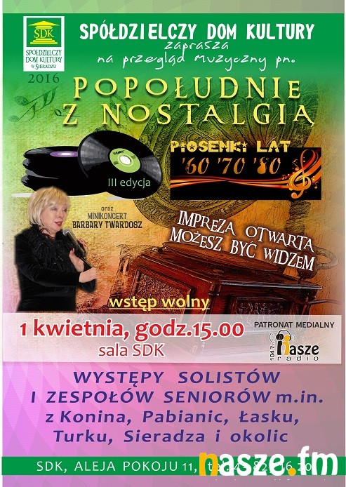 - Podczas tego spotkania muzycznego zaprezentują się soliści i zespoły seniorów. W tym roku mamy wyjątkowo dużo gości, przyjadą z Pabianic, Konina, Łasku i Turku. Oczywiście nie zabraknie też zespołów z Sieradza i okolic – zapowiada Irena Kostrzewska, kierownik SDK.