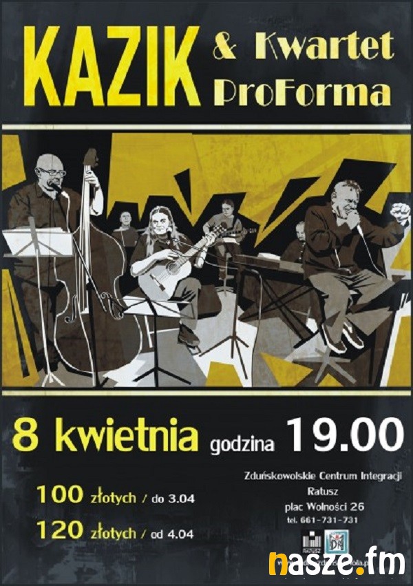 W zduńskowolskim ratuszu już 8 kwietnia wystąpi Kazik z Kwartetem ProForma. Są jeszcze bilety na tę muzyczną ucztę.