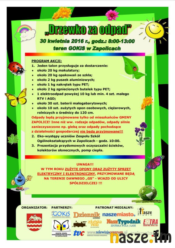 W zamian za przyniesione odpady mieszkańcy otrzymają sadzonki roślin. Mowa o akcji ekologicznej "Drzewko za odpad", która jutro (30.04) odbędzie się na terenie Gminnego Ośrodka Kultury i Sportu w Zapolicach.