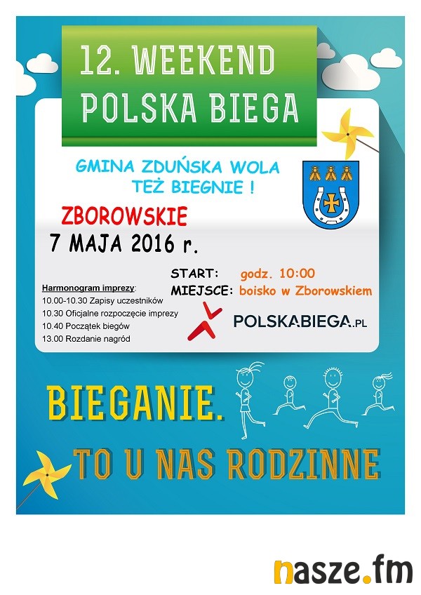 Gmina Zduńska Wola zaprasza wszystkich entuzjastów biegania na imprezę biegową pod nazwą „POLSKA BIEGA”, która odbędzie się 7 maja na boisku sportowym we wsi Zborowskie. Bieg odbędzie się w ramach ogólnopolskiej akcji społecznej, której celem jest propagowanie sportu, a przy okazji zdrowia i radości życia.