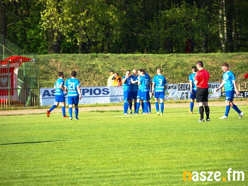 Pierwszy gol dla gości padł w 31 minucie. W środku pola piłkę stracił Michał Łochowski. Przejął ją Artur Golański, który wbiegł w pole karne, kiwnął obrońcę i mocnym strzałem pokonał bramkarza Warty Sieradz. Drugą bramkę w 68 minucie strzałem z dystansu zdobył Adam Patora.