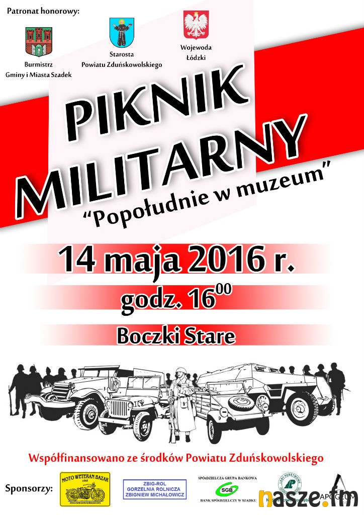 Gmina i Miasto Szadek również przyłącza się do ogólnopolskiej akcji "Noc Muzeów". Z tej okazji w najbliższą sobotę (14.05) w miejscowości Boczki Stare odbędzie się Piknik Militarny pt. "Popołudnie z muzeum".