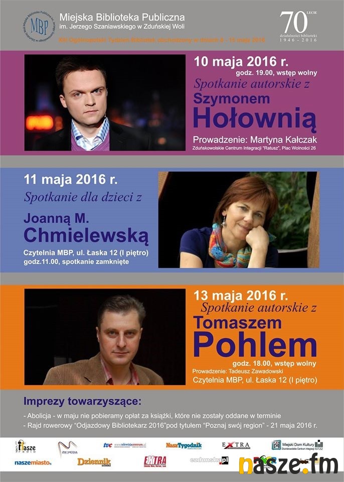 W całym kraju trwa Tydzień Bibliotek. Zduńskowolska książnica zorganizowała z tej okazji ciekawe spotkania z autorami słowa pisanego. Już dzisiaj w ratuszu odbędzie się spotkanie autorskie z Szymonem Hołownią.