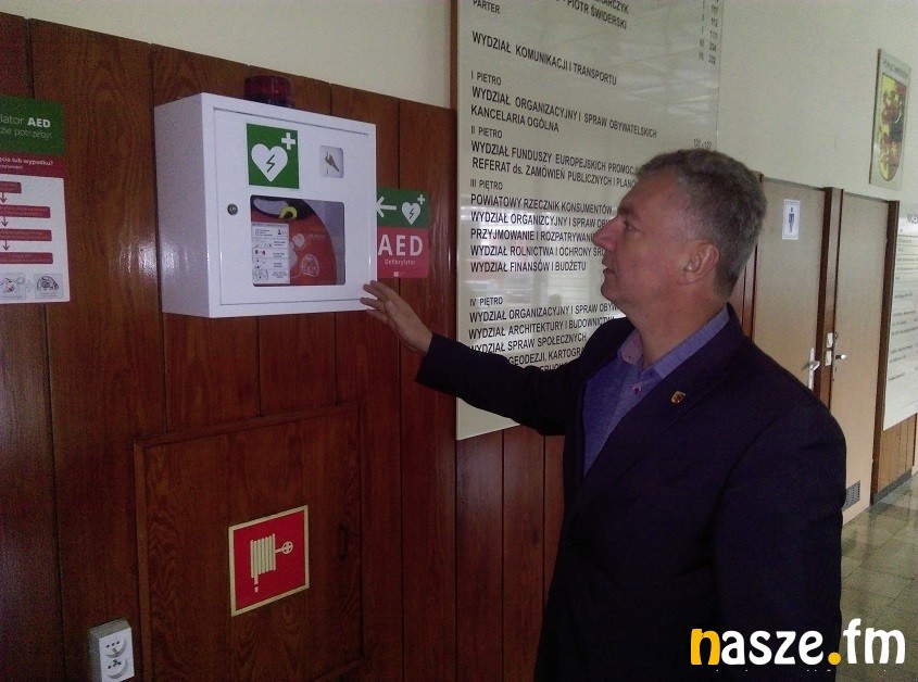 W sieradzkim Starostwie Powiatowym pojawiło się bardzo ważne urządzenie ratujące w razie potrzeby życie człowieka. Chodzi o defibrylator, który umieszczono na parterze głównego budynku urzędu.