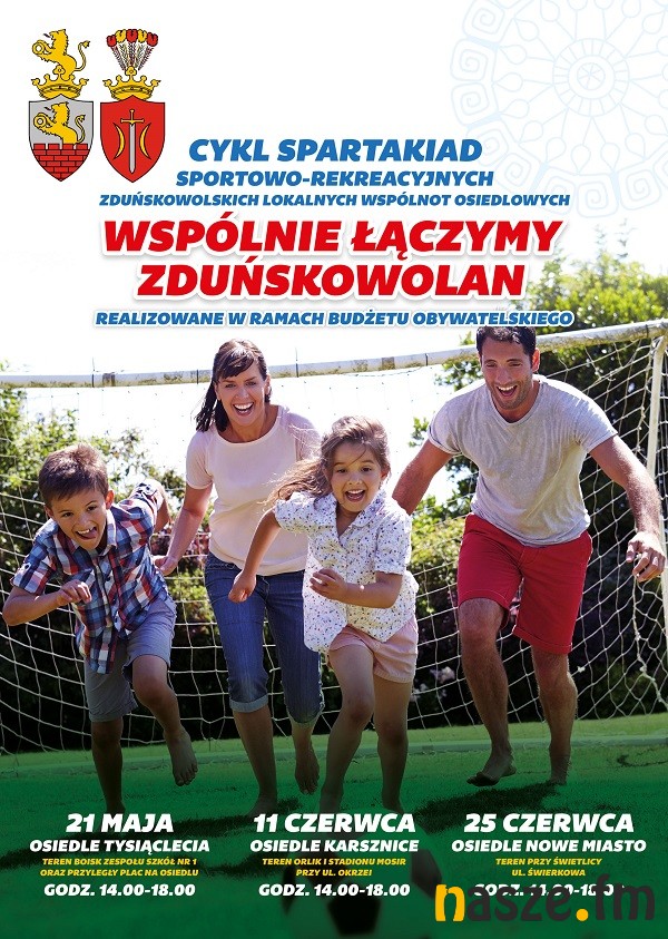 Prezydent Zduńskiej Woli zaprasza na cykl spartakiad sportowo- rekreacyjnych Zduńskowolskich Lokalnych Wspólnot Osiedlowych pod hasłem: "Wspólnie Łączymy Zduńskowolan". Wszystko w ramach tegorocznego budżetu obywatelskiego.