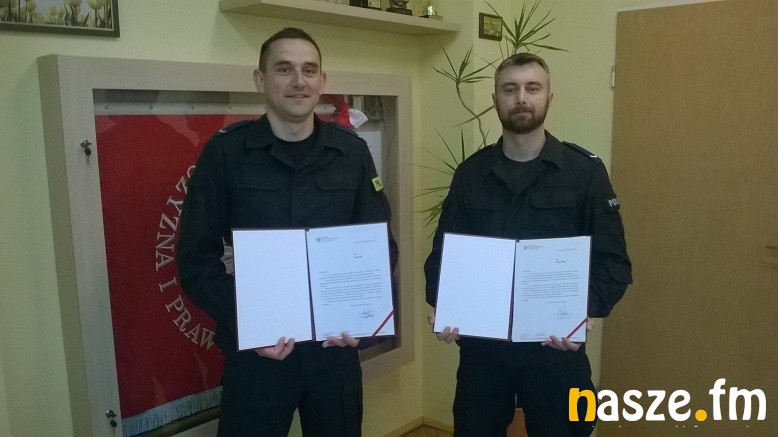 Wyróżnieni to sierż. Wiesław Bogus i sierż. Łukasz Mak, policjanci Ogniwa Patrolowo-Interwencyjnego KPP w Sieradzu. Minister podziękował funkcjonariuszom za profesjonalne zachowanie w czasie nocnej interwencji w dn. 22 listopada 2015r. Obaj policjanci pojechali do jednego z domów na terenie Sieradza, gdzie miało dojść do awantury pomiędzy dwoma młodymi mężczyznami. Na miejscu okazało się, że jeden z nich miał rany cięte nie zagrażające bezpośrednio życiu, a drugi zamknął się w łazience i nie reagował na próby nawiązania z nim kontaktu. Z ustaleń wynikało, że mężczyzna prawdopodobnie chce popełnić samobójstwo. Stróże prawa wyważyli drzwi i weszli do pomieszczenia, w którym wisiał już na kablu mężczyzna. Policjanci natychmiast odcięli go, a ponieważ nie wykazywał funkcji życiowych bezzwłocznie przystąpili do resuscytacji. Szczęśliwie dzięki temu udało się przywrócić pełne funkcje życiowe ratowanego. Niedoszłego samobójcę policjanci przekazali potem wezwanym na miejsce ratownikom medycznym. Wspomniane listy gratulacyjne dla obu policjantów są najlepszym dowodem na ich profesjonalne zachowanie.