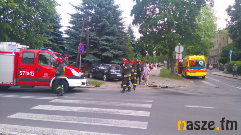Według wstępnych ustaleń policji 41-letni kierowca Renault Megana, chcąc przeciąć ulicę Szkolną, wymusił pierwszeństwo przejazdu i doprowadził do zderzenia z prawidłowo jadącym Fordem Focusem. Samochody zjechały na chodnik, ścięły znak drogowy, po czym uderzyły w ogrodzenie posesji. Autami podróżowały cztery osoby, w tym dwoje dzieci.