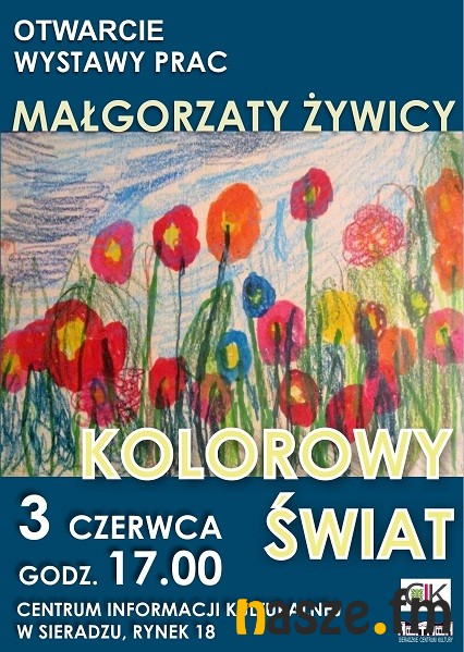 Gosia jest osobą "pozytywnie zakręconą", wesołą i towarzyską. Tak też przedstawia swój świat, w jasnych, pastelowych barwach. Jej obrazki są odzwierciedleniem tego ,co "jej w duszy gra". Będzie je można podziwiać w Centrum Informacji Kulturalnej w Sieradzu. Otwarcie wystawy w piątek ( 3 czerwca) o godz. 17:00, wstęp wolny.