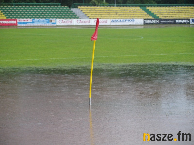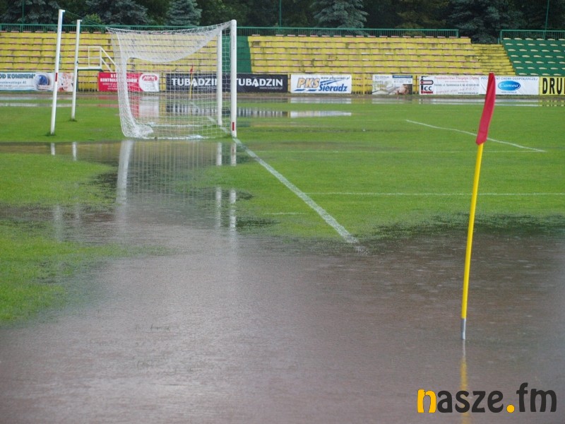 Mecz Warty Sieradz z Bronią Radom w ramach 33. kolejki III ligi został przerwany w 42. minucie z powodu intensywnych opadów deszczu. Po kilkudziesięciu minutach ulewy boisko nie nadawało się do gry. Mecz zostanie dokończony przy stanie 0:1.