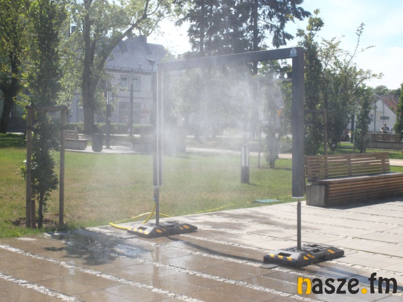 Początek wakacji przywitał nas iście upalną pogodą. Na Placu Wolności przy Zduńskowolskim Centrum Integracji – Ratusz pojawiła się specjalna zraszająca bramka. Chętnych do ochłody nie brakuje.