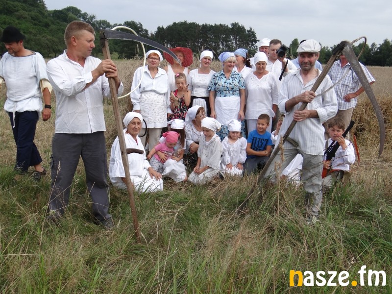 Organizatorzy zadbali nie tylko o narzędzia ale również o stroje, był wóz konny oraz jedzenie, którym posilali się żniwiarze, tak ja za dawnych lat.
