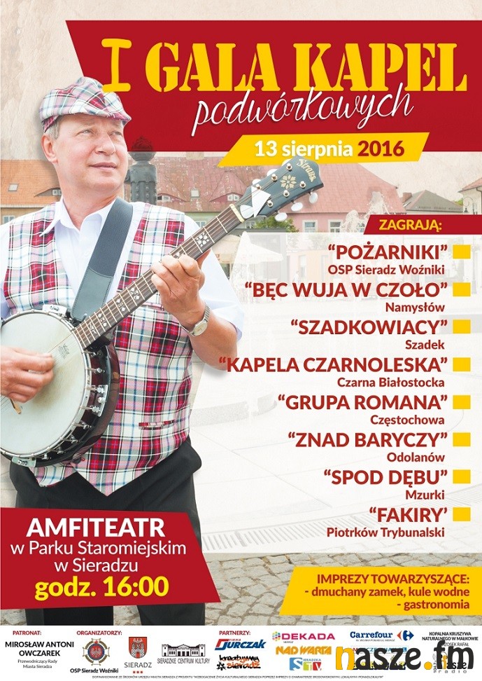 Przypominamy, że dziś popołudniu I Gala Kapel Podwórkowych w Sieradzu. Publiczność będzie mogła oklaskiwać kilka zespołów muzycznych z różnych zakątków regionu i kraju.