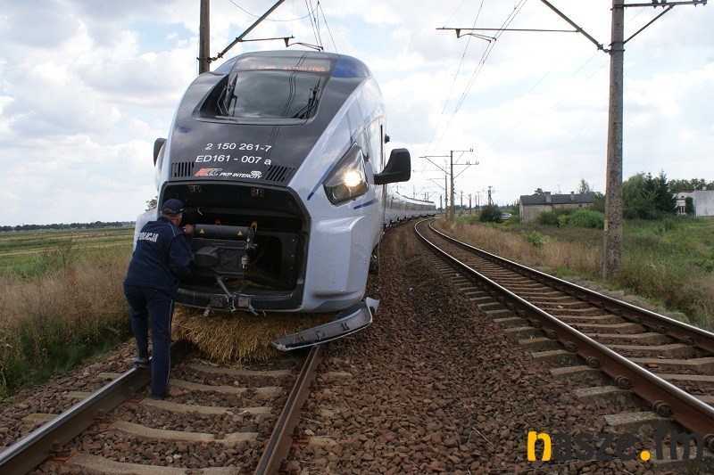 Jak informuje sieradzka policja pociąg stanął i zablokował ruch na przejeździe po tym jak uderzył w leżącą na torach belę słomy. Ta prawdopodobnie spadła komuś z przyczepy podczas przejazdu przez tory. Podjechał tam już inny skład, do którego przesiedli się pasażerowie. Warto tam nadal uważać, bo jazda przez skrzyżowanie z linią kolejową Sieradz - Kalisz może być utrudniona jeszcze przez kilkadziesiąt minut. Swoje czynności wykonuje na miejscu policja.