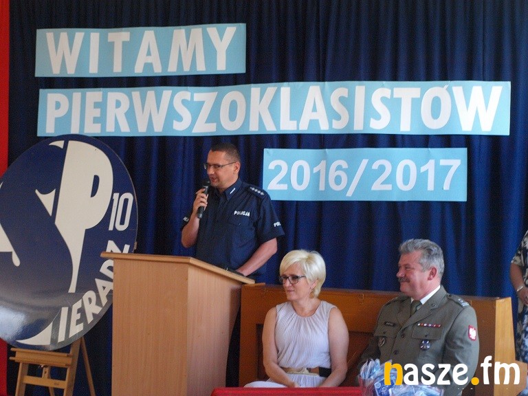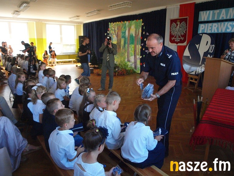 Z tej okazji odwiedziliśmy dziś Szkołę Podstawową nr 10, gdzie radośnie rozpoczęli naukę pierwszoklasiści. Na uroczystości, oprócz samych zainteresowanych i rodziców, obecni byli również goście wśród nich przedstawiciele policji, którzy wręczyli uczniom odblaski. Po pasowaniu na pierwszoklasistę i krótkim przemówieniu dyrektor Kazimiery Gotkiewicz przyszedł czas na część artystyczna, którą przygotowali uczniowie starszych klas. Na koniec uroczystości wszystkim pierwszakom zrobiono pamiątkowe zdjęcie.