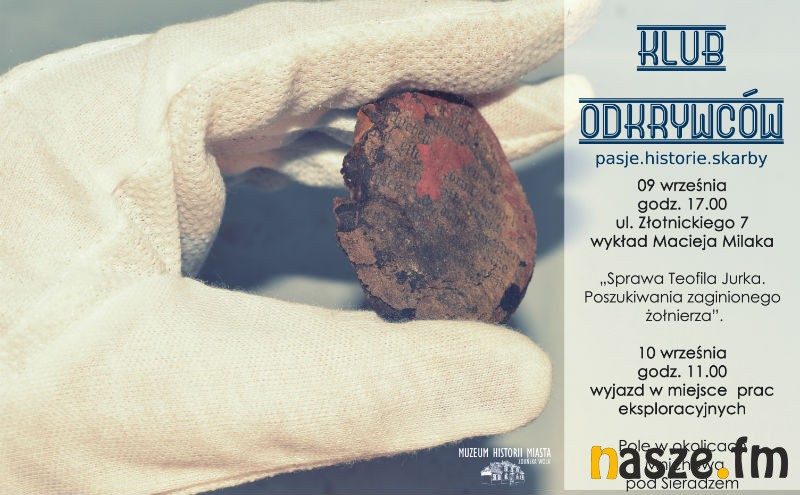 Pierwsze spotkanie pt. "Sprawa Teofila Jurka. Poszukiwania zaginionego żołnierza" poprowadzi Maciej Milak. Odbędzie się ono w piątek 9 września w siedzibie muzeum. Początek o godz. 17: 00. Wstęp wolny.
