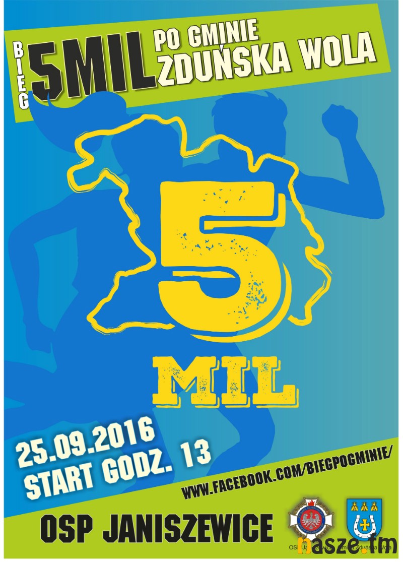 Już w niedzielę kolejna impreza biegowa w naszym regionie, tym razem na nietypowym, 5. milowym dystansie. Start 25. września o godzinie 13:00 przy budynku Ochotniczej Straży Pożarnej w Janiszewicach. Do dziś wpisowe wynosi 30 zł, w dniu zawodów 40.