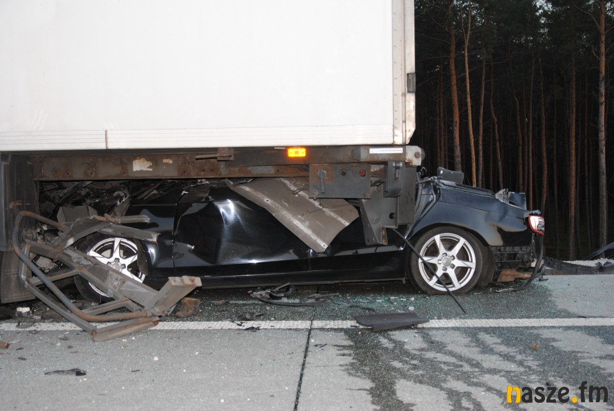 39-letni mieszkaniec Sieradza, kierowca audi A4, na prostym odcinku drogi stracił panowanie nad pojazdem, zjechał na pobocze, uderzył w barierkę energochłonną, a następnie wjechał w tył stojącego na pasie awaryjnym samochodu ciężarowego MAN z naczepą. W wyniku wypadku kierowca audi poniósł śmierć na miejscu. 38-letni kierowca ciężarówki był trzeźwy i nie odniósł obrażeń. Tir stał na pasie awaryjnym z powodu awarii ogumienia i był oznakowany dwoma trójkątami ostrzegawczymi.