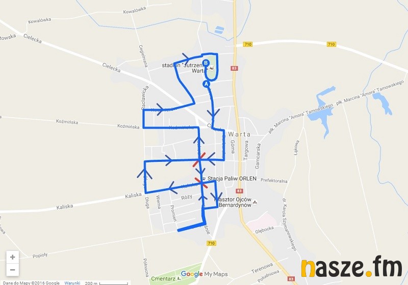 Trasa będzie przebiegać ulicami: Sadową (start przy stadionie Jutrzenki), Cielecką, Garbarską, Tadeusza Kościuszki, Zachodnią, Kaliską, Mansjonarską, Świętokrzyską, Przedwiośnie, Popioły, Przedwiośnie, Kaliską, Długą, Tadeusza Kościuszki, Zachodnią, Koźmińską, Racławicką, Kosynierów, Zamłynie, Powstania Listopadowego, Kazimierza Deczyńskiego. W sumie na uczestników czeka 5-kilometrowa, atestowana trasa z metą na bieżni stadionu. Mapa dostępna poniżej.