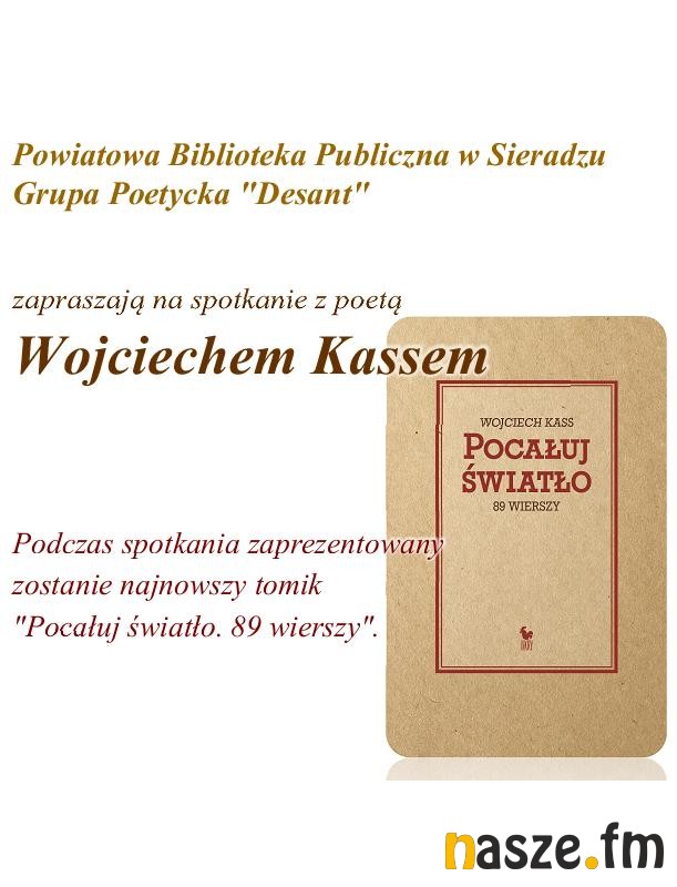 Powiatowa Biblioteka Publiczna oraz Grupa Poetycka "Desant" zapraszają na spotkanie autorskie z poetą Wojciechem Kassem.
