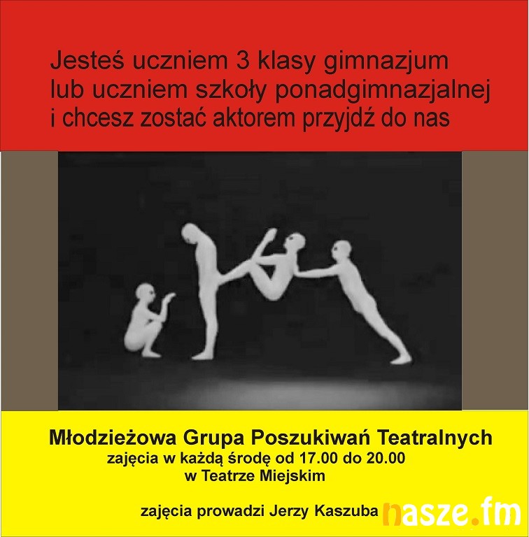 Zajęcia będą prowadzone na scenie Teatru Miejskiego w każdą środę od godz.17:00 do 20:00.